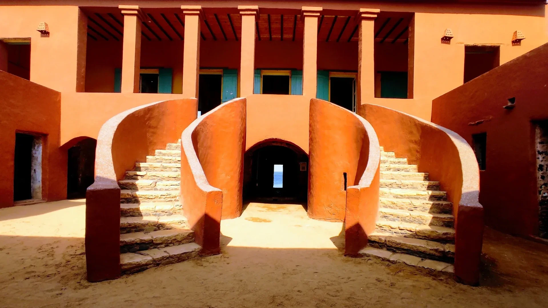La maison des esclaves sur l'île de Gorée, un lieu chargé d'histoire et d'émotion, est un passage obligé pour comprendre le passé du Sénégal. Cette photo capture la solennité et le souvenir qui émanent de ce lieu emblématique.